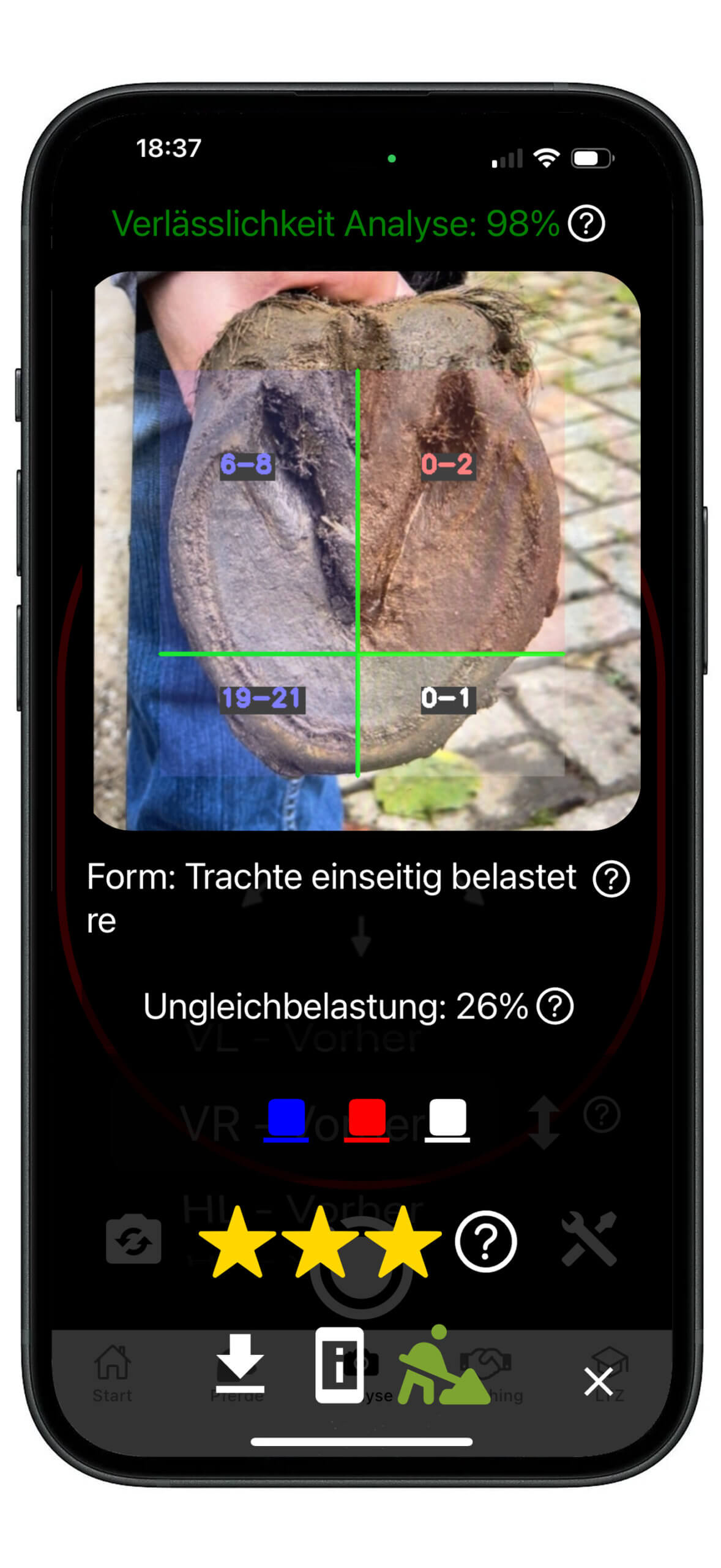 With our Huf app we can help you with practical learning and later on with the customer. The app analyzes hooves for you and gives you editing tips. You get them for free!